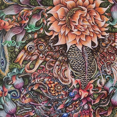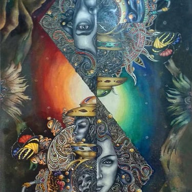 My art is an elaborate, gripping visual poetry. It explores the beauty and complexity of the inner world. Highly intricate, colorful, symbolic, and beautifully complicated, each creation highlights the fascinating details of a memory, event, recurring emotion, perception, vision, or state of mind.