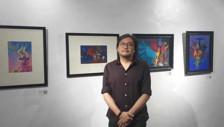 Angels, a recurring motif in my artistic endeavors, once again take center stage in my latest collection for BalinTanaw. These celestial beings serve as a profound embodiment of my introspective journey and act as guiding muses, facilitating a visual exploration of the internal dialogues that shape my choices and convictions. Within the realm of traditional oil on canvas and the new frontier of digital art, I deliberately traverse diverse mediums, reflecting the evolving trajectory of my artistic mindset and a fervent commitment to pushing boundaries.